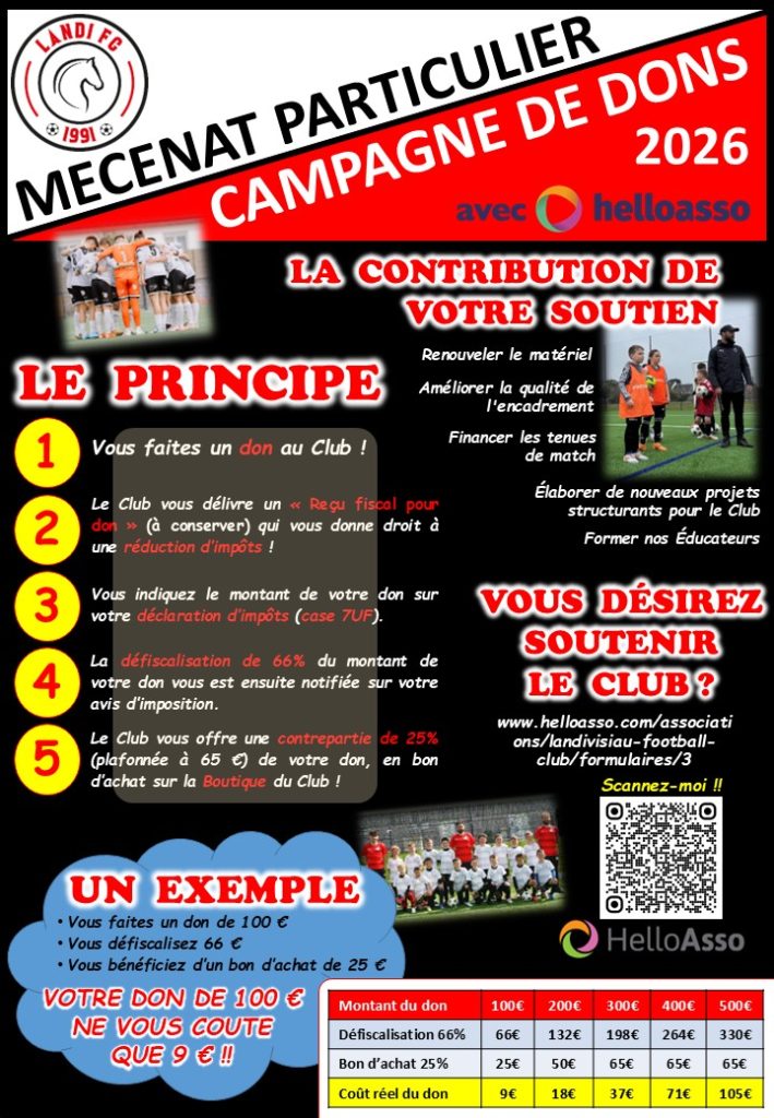 Des questions sur cette campagne de Mécénat Particulier au Landi FC ? –> Les réponses dans le flyer recto/verso, ci-dessous, et à télécharger ICI !